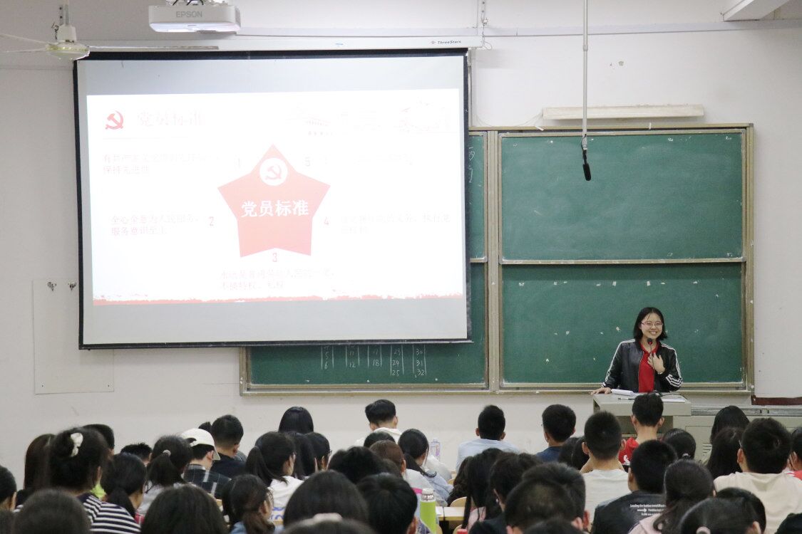 4月26日晚,湖北大学商学院党性历练宣讲团成员、2016级工程管理专业马敬燕,青马工程主讲人、2016级会计学胡青来院为第29、30期入党积极分子开展党课教育,党课班主任邓琪及229名入党积极分子参加活动。