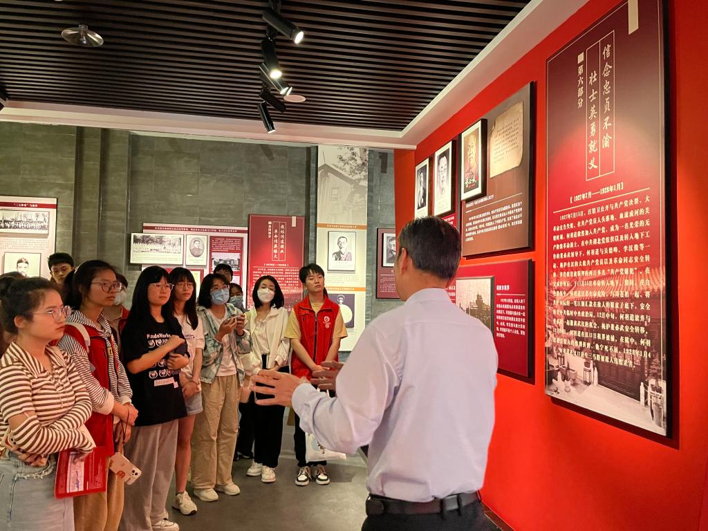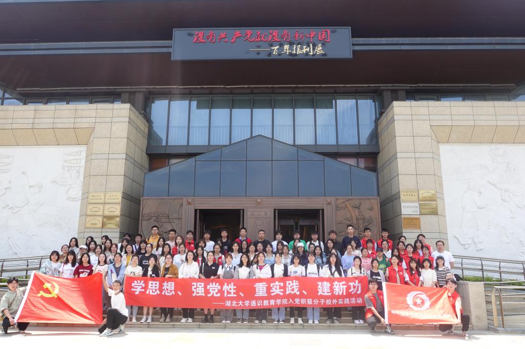 百年报刊宣百年党史,红色教育强信念之基。为深入学习贯彻习近平新时代中国特色社会主义思想、充分利用我校实践教学基地以推进“大思政课”建设取得实效,通识教育学院第三十九期党校培训班和星火青年先锋队于5月9日下午联合开展参观湖北大学-武汉龙源红色报刊博物馆“大思政课”实践教学基地活动。本次活动由刘梦锜老师和罗成辉老师带队,分为两个批次进行,其中A批次44人,B批次48人。