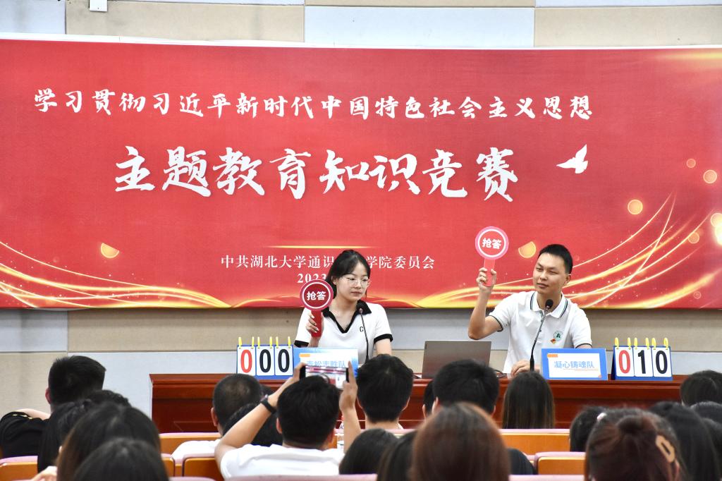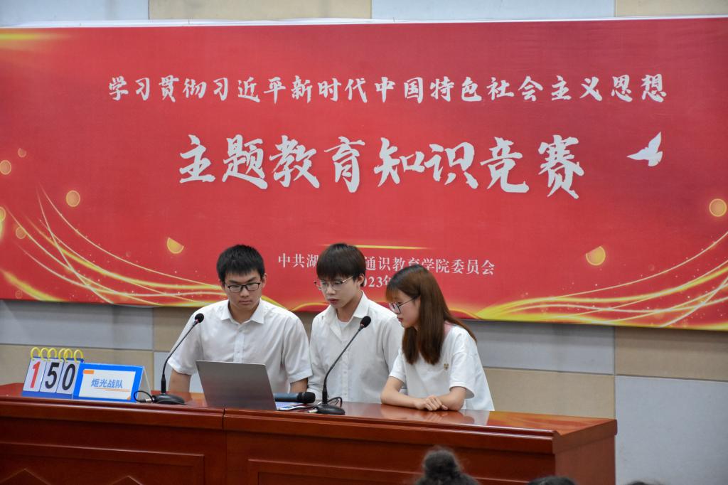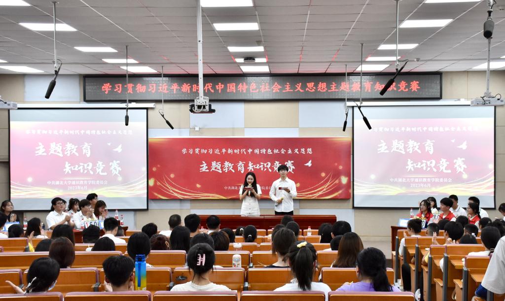 为深入开展学习贯彻习近平新时代中国特色社会主义思想主题教育,检验主题教育学习成效,6月2日下午,学院举行学习贯彻习近平新时代中国特色社会主义思想主题教育知识竞赛决赛。学院党委书记廖良才、党委副书记韩凯、副院长向祖慧、办公室主任彭显彪、阳逻校区后勤服务中心党支部书记陈忠文等出席活动。播音与主持艺术专业学生罗言佳、傅瑞科主持活动。