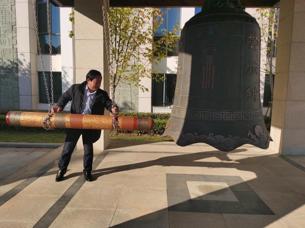 在基地廉政文化广场上,大家面向警示钟庄严肃立,学院党委书记廖良才敲响警示钟,钟声响起,入耳入心,警示着在场的每一名党员干部要时刻绷紧廉洁自律这根弦,将廉洁自律的政治自觉、思想自觉和行动自觉融入到日常工作生活中,做到知敬畏、存戒惧、守底线。