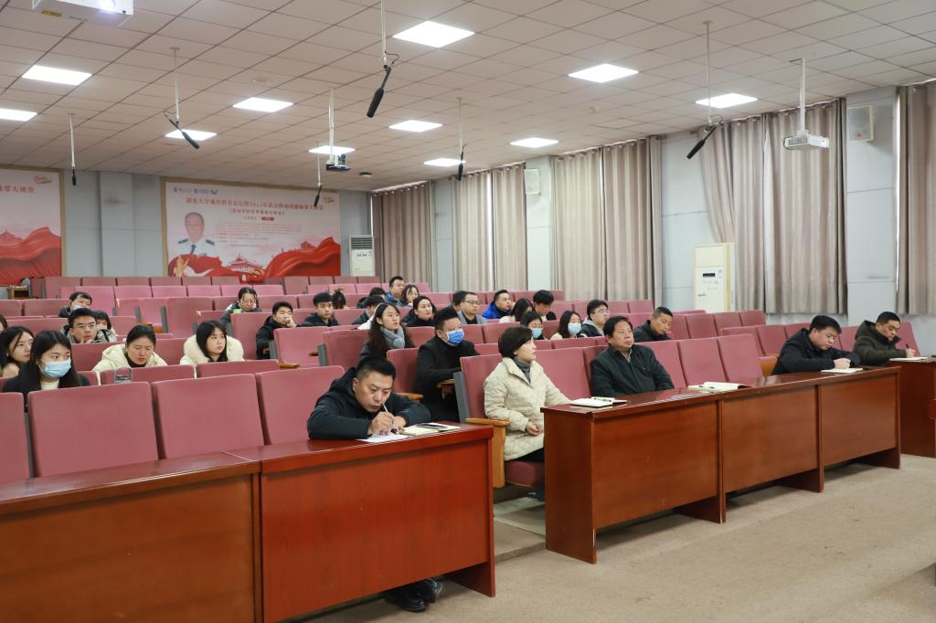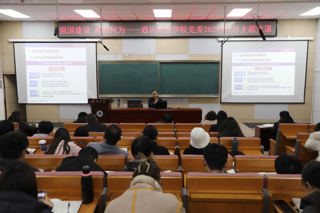 深入学习贯彻习近平新时代中国特色社会主义思想和党中央关于教育的重大战略部署,1月16日下午,通识教育学院党委组织召开2024年1月主题党课,校党委常委章天金以“强国建设,高教何为”为主题作辅导报告。报告会由院党委书记廖良才主持,全体院领导、教职工代表参加了报告会。