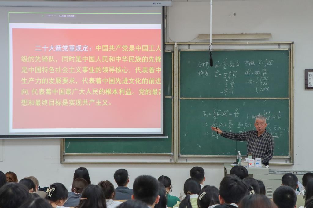 课上,方光荣不仅带领学员们宣读了入党誓词,还分享了先辈们的红色革命故事,引导学员们深刻领会党的初心和使命。他激励学员们珍惜大学时光,努力学习党的理论,不断提高自身素质,争取早日加入中国共产党,并向学员们寄予了殷切期望:“大学四年是人生探索的重要阶段,希望你们能够练就过硬本领,为实现中华民族伟大复兴的中国梦不懈奋斗!”