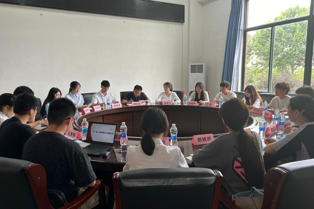 为学习贯彻习近平新时代中国特色社会主义思想和党的二十大精神,进一步了解入党积极分子的思想动态,引导入党积极分子更好学习党的基本知识及方针、政策,6月4日下午,阳逻校区管委会主任、通识教育学院院长杨元业在A205会议室与学院第41期入党积极分子座谈,辅导员赵俊洋主持会议。
