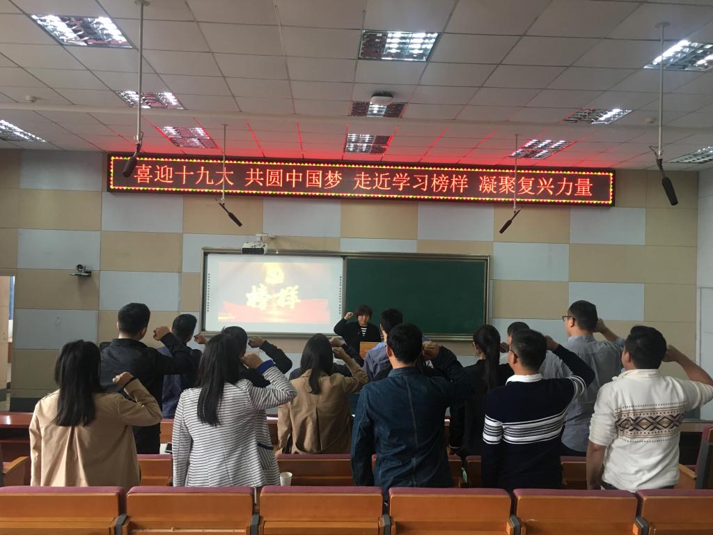 10月11日,学院学工党支部开展以“喜迎十九大、共圆中国梦,走近学习榜样、凝聚复兴力量”为主题的主题党日活动。支部纪检委员严秀红主持会议,支部全体党员参加会议。