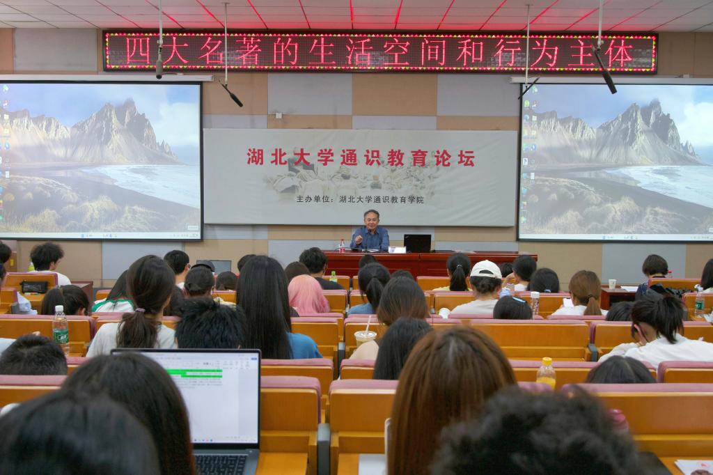 5月15日下午,武汉大学陈文新教授应邀做客湖北大学通识教育论坛,以“四大名著的生活空间和行为主体”为题,为阳逻校区学生带来了一场精彩的讲座。论坛由通识教育学院副院长向祖慧主持。