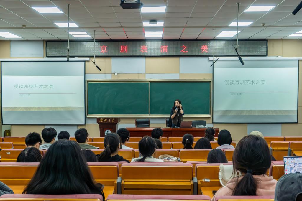 “海岛冰轮初转腾,见玉兔,玉兔又早东升……”4月30日晚,余音绕梁的唱腔从B300传出,湖北省京剧院优秀青年演员陆艺君应邀到湖北大学阳逻校区讲授通识核心课——“京剧与地方戏审美”。