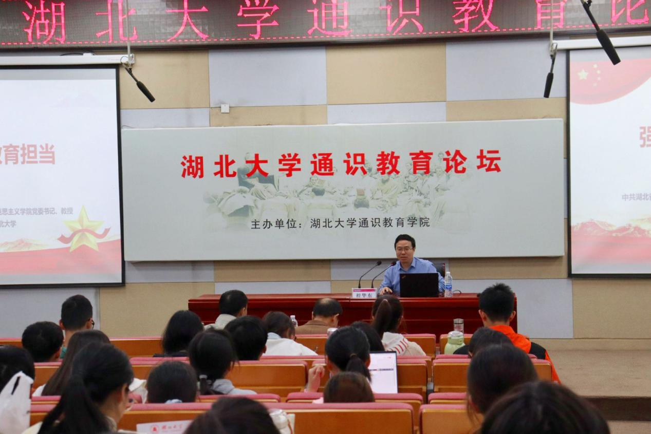 11月23日晚,华中农业大学马克思主义学院党委书记、马克思主义理论学科研究员程华东应邀到湖北大学阳逻校区做客通识教育论坛开讲“强国大计,教育担当”。论坛由通识教育学院副院长周清主持。