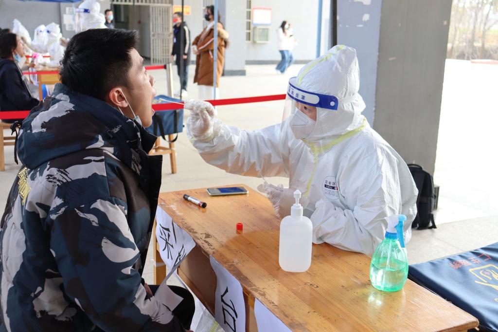 为响应武汉市疫情防控工作号召,保障学生生命健康安全,3月6日上午8:30,湖北大学通识教育学院开展了入校后的第二次全员核酸检测。本次核酸检测由武汉市新洲区阳逻街道办的20余名医务人员进行检测,现场由通识教育学院的20余名学生志愿者维持秩序。