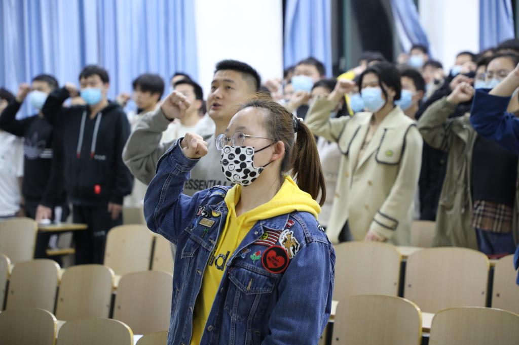 仪式一开始,全体与会人员起立,奏唱中国共产主义青年团团歌。接下来,由沈银嘉领誓,全体同学重温体会入团誓词,并由通识教育学院团委指导老师胡喆罡为结业仪式致辞。他说,本期团校形式丰富多样,通过理论与实践相结合的方式,为学员们提供了生动详实且积极向上的团课。在建团一百周年之际,我感受到了同学们学习团史知识的热情,看到了同学们奋勇向前、勇担使命的激情。希望各位青年团员,能够加强自身理论修养,克服浮躁心理,正确认识共青团在我党发展和社会主义现代化建设中的重要作用,虚心学习、艰苦奋斗,努力实现自己的远大理想,为我国的现代化建设和中华民族的伟大复兴贡献自己的力量。