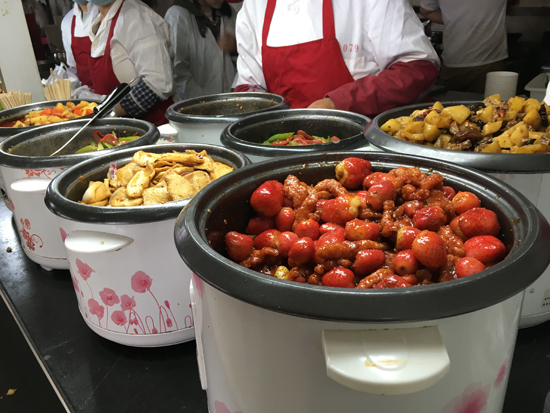 负责盖浇饭窗口打餐的李师傅表示草莓糖醋里脊推出第一天的销量很不错,尤其受女生们的欢迎。