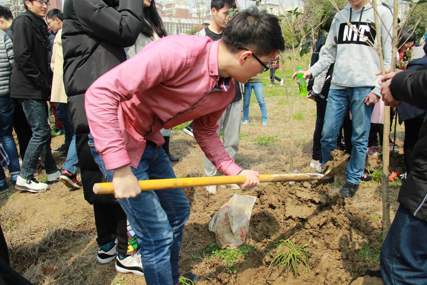 3月11日中午,阳光明媚,植树节前一天,湖北大学通识教育学院驾校旁的空田地上挤满了学生,他们手里拿着树苗和铁锹等工具。这是通识教育学院“种植习苑纪念树”活动现场。