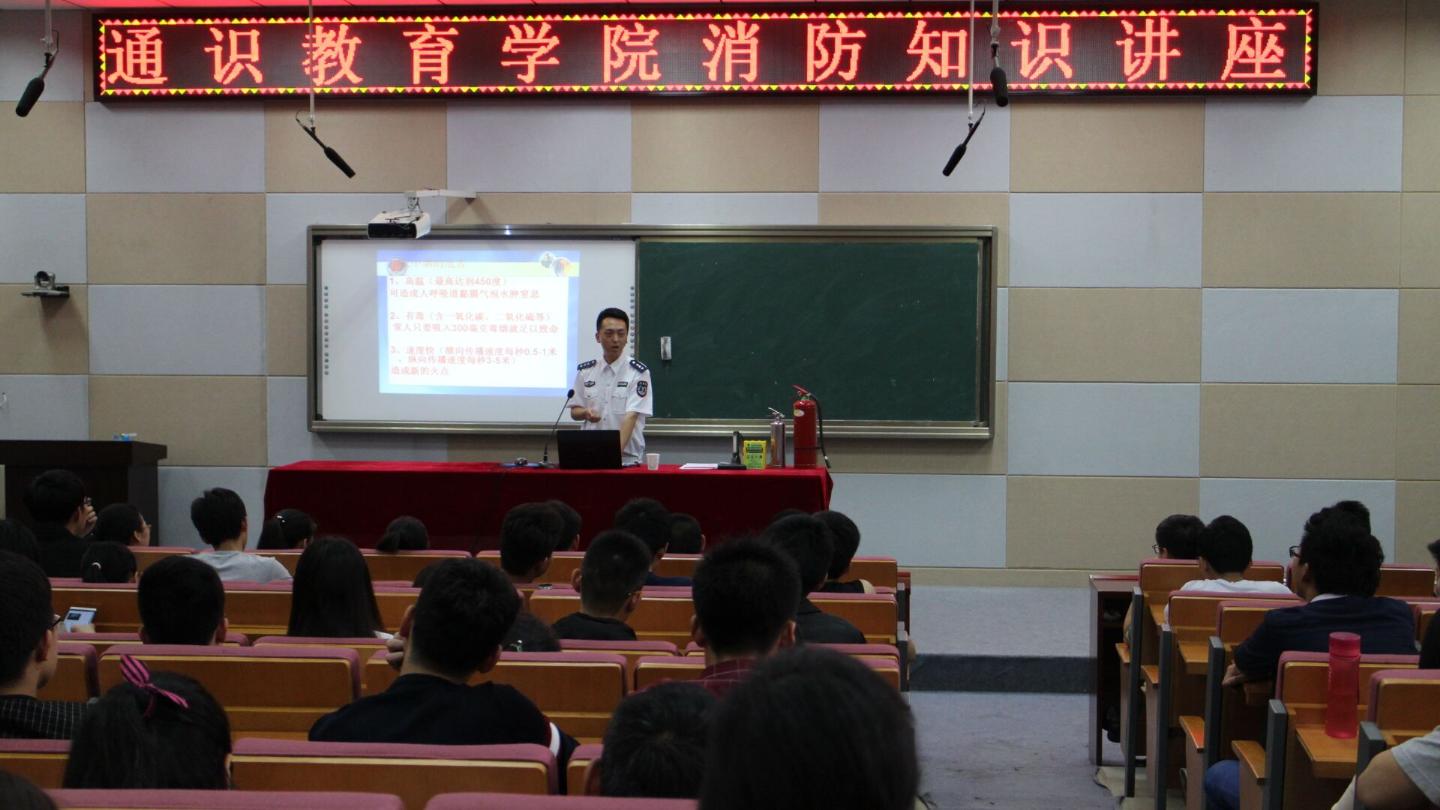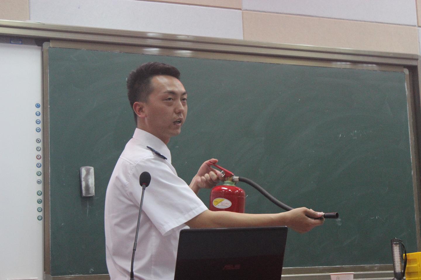 4月27日下午,学院开展消防演练系列活动,邀请湖北省消防协会警官周松来院进行消防讲座及现场指导。百余名师生代表参加活动。周松从基本灭火常识、灭火工具使用方法两个方面进行了详细讲解。周警官还组织大家进行现场灭火演习。