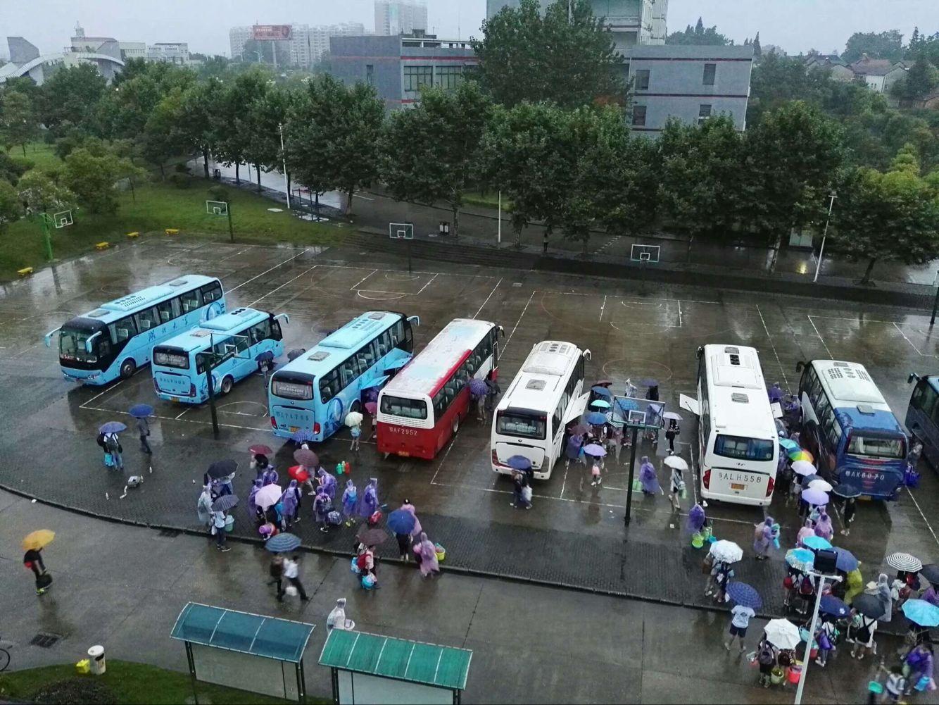 回迁当天,暴雨如注,学院紧急启动雨天回迁预案。各部门紧密配合,回迁工作人员、辅导员、学生志愿者冒雨倾力配合,努力克服困难,行李搬运、学生接送等工作在暴雨中有条不紊地进行。
