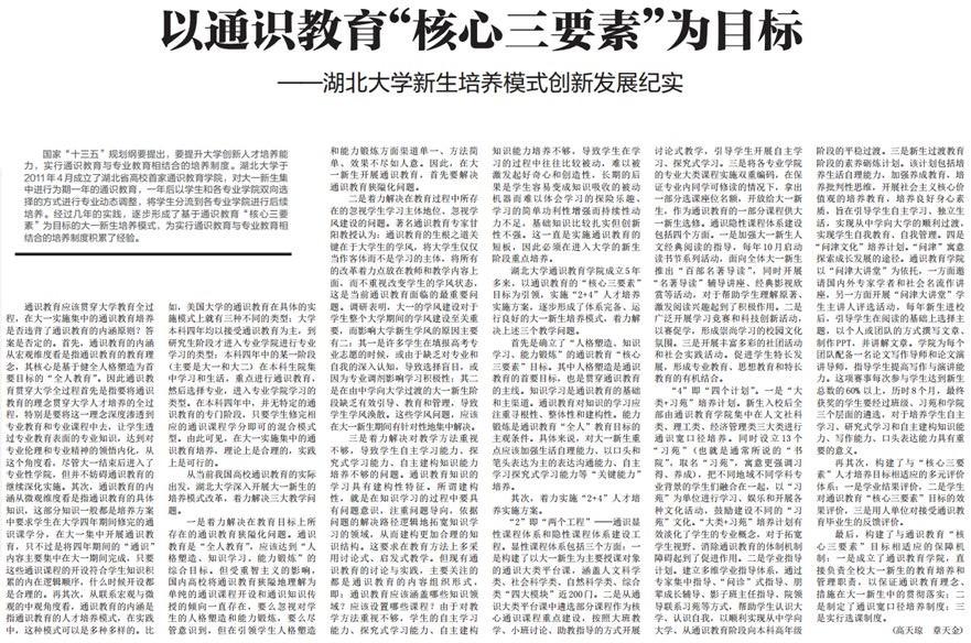 从当前我国高校通识教育的实际出发,湖北大学深入开展大一新生的培养模式改革,着力解决三大教学问题。