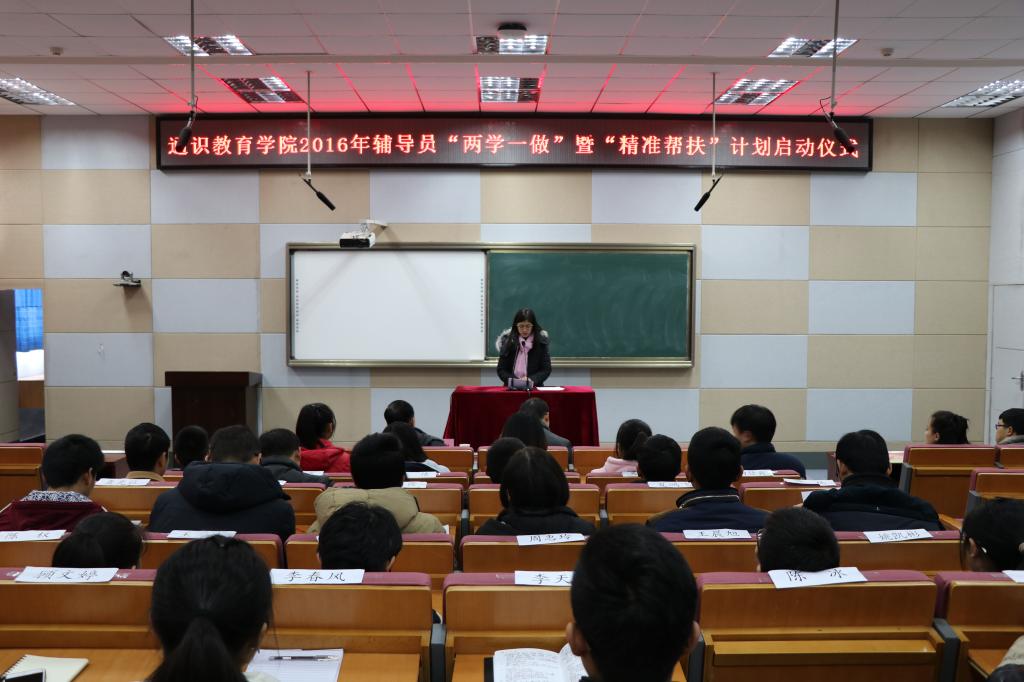 “大手拉小手,师生并肩走。”为帮助困难学生学有所教、惑有所解、爱有所依,我院于12月14日下午在B300录播室举行辅导员“两学一做”学习教育暨“精准帮扶”计划启动仪式。学工处副处长陈腾、通识教育学院副院长陈文超、学院全体辅导员及结对学生代表出席仪式。