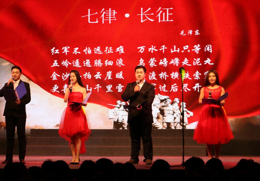诗朗诵《长征》传递了满满的正能量,由各习苑代表组成的13人彩旗队在节目尾声走向舞台中央,大喊出自己习苑的名字以及“向祖国报道”,点燃现场观众热情。由阳光合唱团带来大合唱《黄河船夫曲》,他们的歌声时而铿锵激进,时而婉转低回,展现了陕北人民在恶劣生活环境中不屈不挠的奋斗精神和乐观向上的精神风貌。“袖若流水清泓,裙如荧光飞舞”,大红色的水袖甩起,11位舞者在绝美的舞姿中变换着队形,展现出了中国古典舞《汉洛·颜子兮》的典雅。来自校艺术团舞蹈组的藏族舞《天浴》同样摄人心魄,舞者伴着变幻的华美的舞美灯光,表现“雨中醒、水中舞、心中舞”的洒脱自得的心境,诠释出藏族人民的随心随性起舞的状态。朗诵节目《相信美好的明天》,52位预备党员用自己铿锵有力的声音传递出了对信仰的坚守和对理想的追求。晚会在全体辅导员合唱《共筑中国梦》中落下了帷幕。