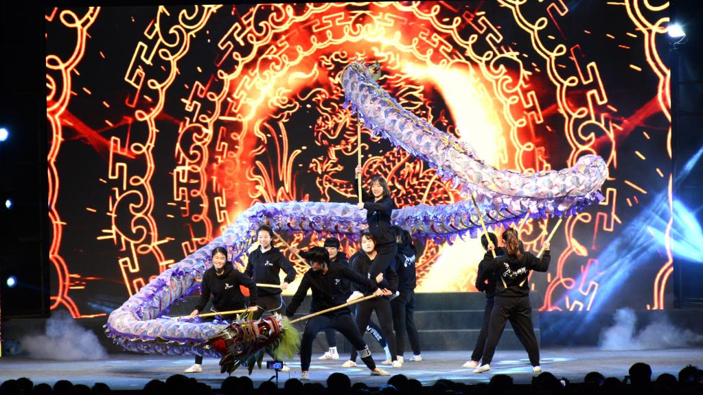 随着校龙狮团的精彩表演《龙腾盛世》,晚会表演正式拉开帷幕。