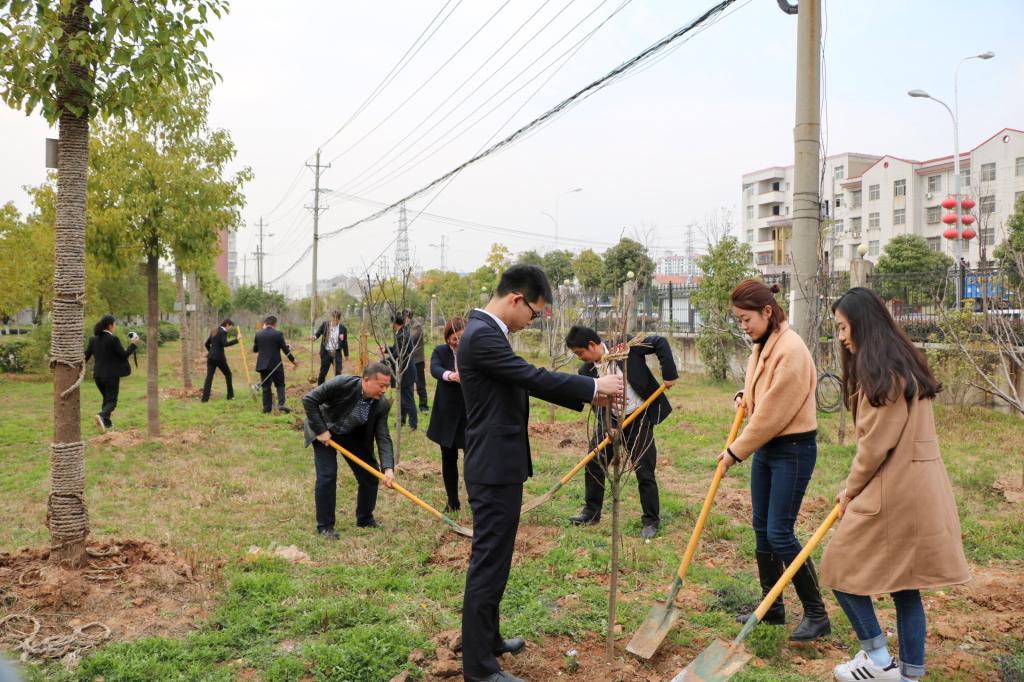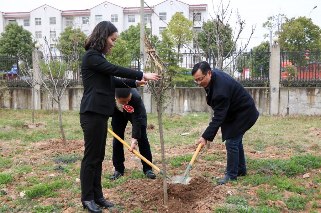 中建五局武汉分公司新洲鄢家湖项目部还向通识教育学院捐赠了20株樱花树苗,两个支部的全体党员和学生代表一起参加了植树活动,亲手种下树苗,并开展了一次美化校园、清运杂物的义务劳动。