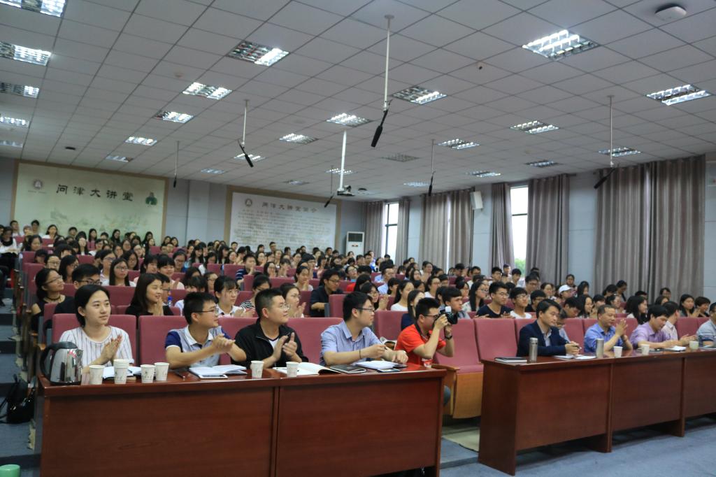 尚钢首先以法国奢侈品单肩包、新华门、政府大门的“为人民服务”为例,深入浅出的阐述了党的宗旨:全心全意为人民服务。他从党的宗旨是什么、党的宗旨的渊源、党的宗旨的时代发展三个方面进一步深入解读了党的宗旨。他强调,“服务”即通过积极体现和实现个体价值而使他人受益的一种过程及服务的三重境界:服务意识、奉献精神(单纯)、牺牲精神(最高境界)。学院教师对学生的教学工作是服务、后勤工作者做好学生生活的保障也是服务,党的宗旨要求每个人必须树立党和人民的利益高于一切的思想。接着,他对“如何践行党的宗旨”进行了阐述。他以省委、省政府有关要求、学校党委贯彻落实有关情况、学生党员如何践行党的宗旨为主线,探讨了如何在实践中更好的发挥服务作用。特别是对于学生党员践行党的宗旨问题,他强调要通过坚定理想信念来强化宗旨意识,要加强理论武装,以“补钙”的坚决措施防止理想信念之“钙”缺失;要通过提升综合素质来增强服务本领,要具备现代人及当代大学生应有的素质,做到“智力因素”与“非智力因素”的有机结合,培养德才兼备、坚韧不拔的毅力、群体的协作精神、广泛的兴趣爱好、乐观豁达的性格;要通过加强道德修养来增强服务自觉,并以我校“长江学者”特聘教授江畅、部分优秀校友,结合学生群体中涌现的10余位优秀代表如学霸赵婕、陈先杰、胡双、赛尔丁等以及通识教育学院“学霸”班级等为例,说明如何在实践中更好的践行党的宗旨。