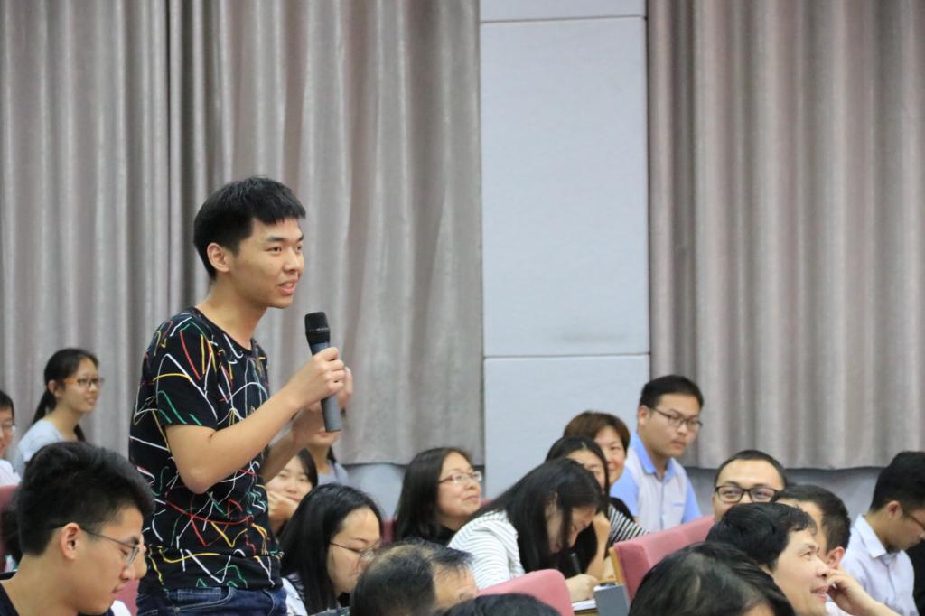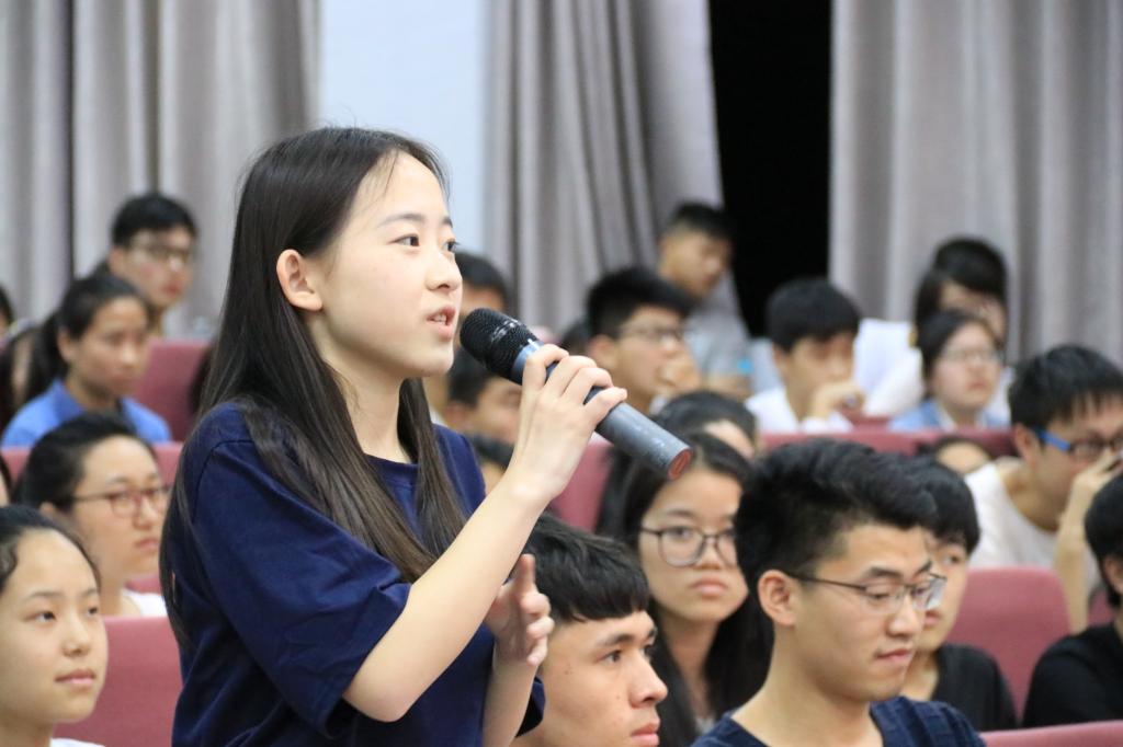 讲座中,尚钢分别与通识教育学院2016级学生中“从安徽合肥独自骑行760公里来学校报到的公共管理专业的黄冠”、“带领全班所有同学通过努力奋斗实现全员零挂科率的会计学团支书王英婷”、“大一便立志要考哥伦比亚大学的材料学专业学生周子傲以及自发建微信群组织同学们相约打卡背单词的档案学专业王韬”、“兼顾照顾母亲与学业的历史学专业张链链”等部分代表现场互动,充分肯定了通识教育学院在通识基本素养培养、知识学习、实践育人方面取得的成绩,强调践行党的宗旨必须要落实到同学们的日常学习生活中,必须做到德才兼备。