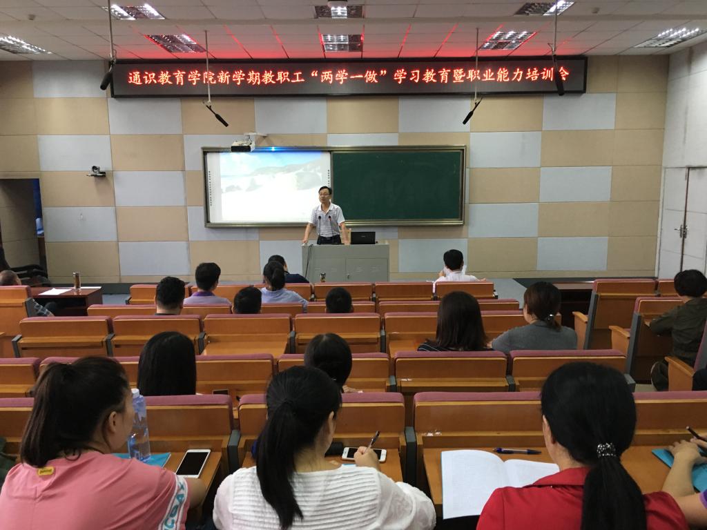 9月3日上午,学院举行2017年秋季学期教职工“两学一做”学习教育暨职业能力培训,全体院领导及新老教职工参加培训。院领导分别以专题报告形式开展培训教育,院党委书记李本义主持培训会。