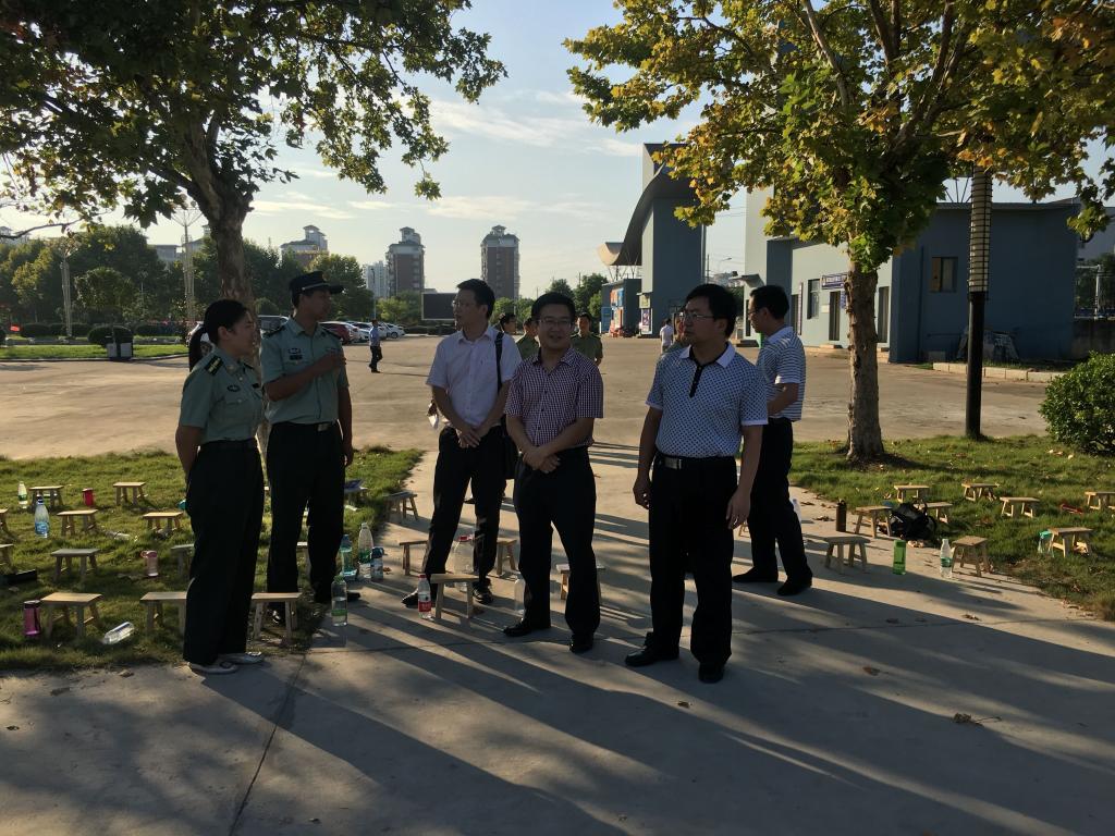 9月15日下午,学校2017级本科生军训旅政委、学工处处长刘靖君、宣传部常务副部长杨元业,政工部部长、学工处副处长陈腾,武装部相关负责人一行来院,实地检查指导学院2017级新生军训工作,并同辅导员开展座谈。院领导班子成员陪同检查。