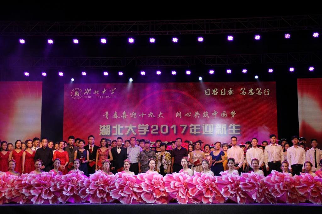 9月20日晚,以“青春喜迎十九大,同心共筑中国梦”为主题的湖北大学2017年迎新生文艺晚会在通识教育学院教学楼广场隆重举行。副校长杨鲜兰、相关职能部门负责人、承训部队首长及全体官兵、通识教育学院近3000名师生观看了晚会。