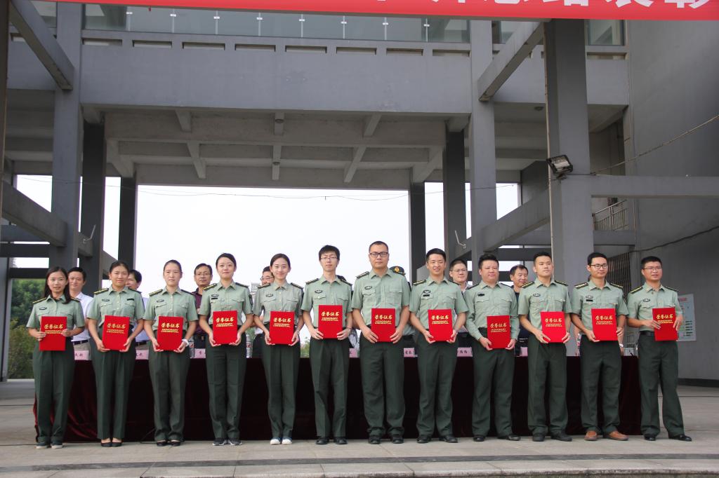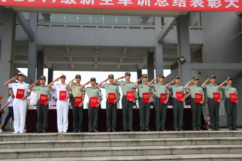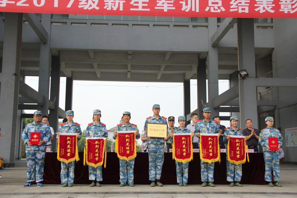 主席台就坐领导分别为优秀指导员、优秀教官及先进集体、优秀学员代表颁奖。十六营等2个营队获评优胜方队、九营等6个营队获评队列先进营、十营等6个营队获评宣传先进营、八营等6个营队获评卫生先进营、十九营获评军训最具人气营、八营三连等12个连获评训练优胜连称号,贾林虎等14名教官获评优秀教官、陈冰等12名教导员获评优秀教导员、陆艳丰等284名学生获评优秀学员称号。