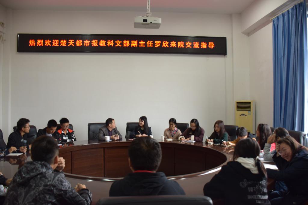 10月12日上午,楚天都市报教科文部副主任罗欣应邀来院与学生开展交流。罗欣介绍了新闻采写知识,并向同学们提出关于新闻采写的建议。