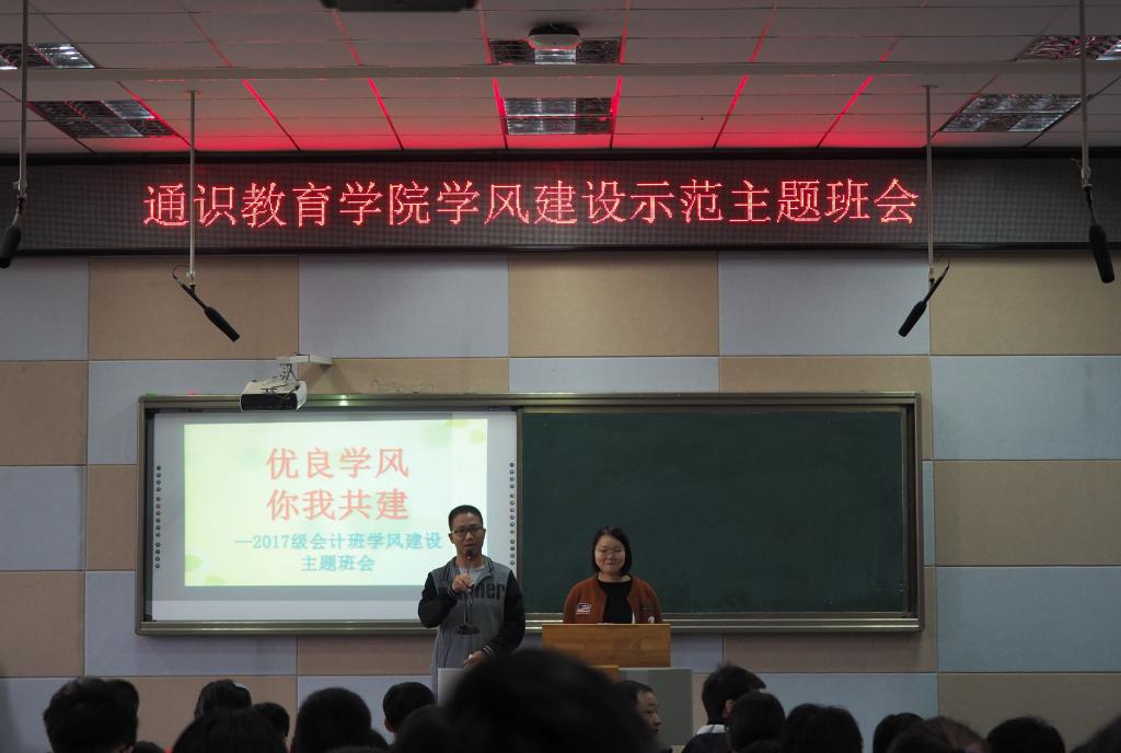 10月13日上午,湖北大学通识教育学院2017级会计学专业在教学楼B300教室召开“优良学风,你我共建”主题示范班会。院党委副书记宋韧、副院长黄文武、全体辅导员和各习苑代表参加了该班会。