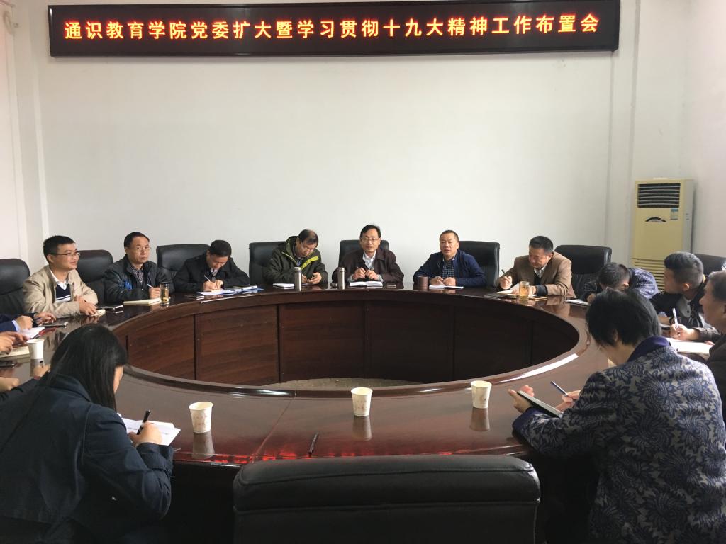 10月17日上午,学院召开党委扩大暨学习贯彻党的十九大精神工作布置会,院领导班子成员、各部门负责人、全体辅导员参加会议。