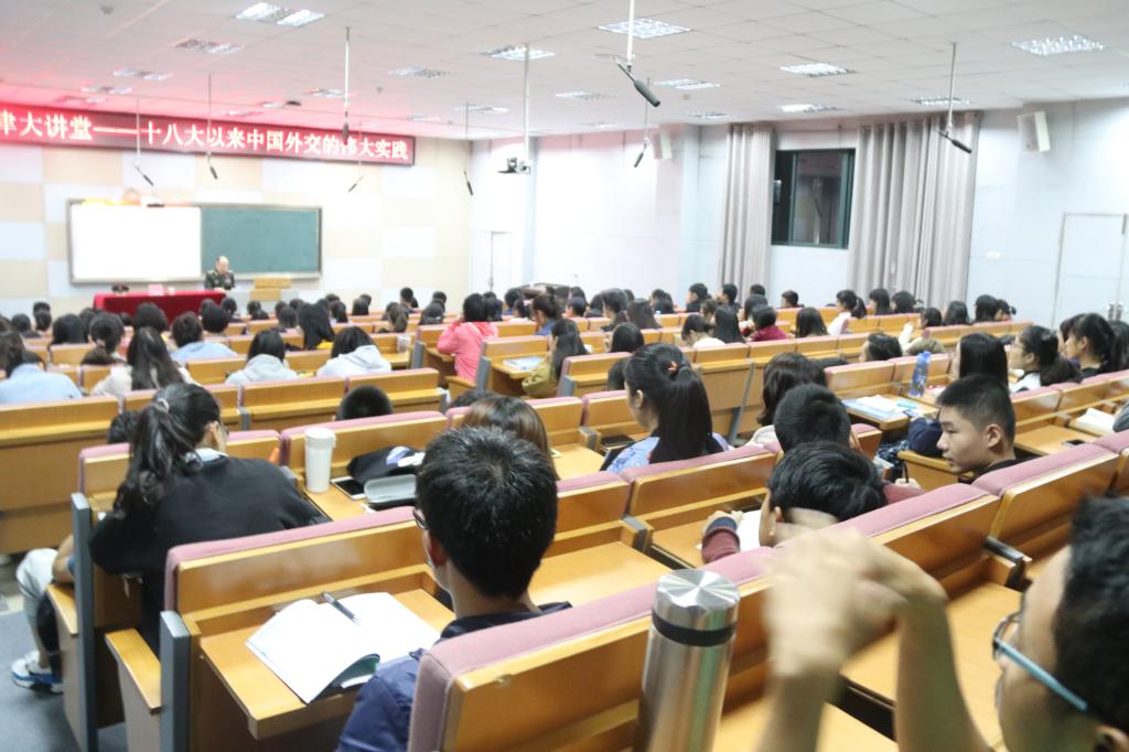 10月18日晚,学院举行了问津大讲堂专家主讲人百期系列讲座,邀请国防科技大学信息工程学院柯幸福大校作题为“十八大以来中国外交的伟大实践”的报告。两百余名同学聆听了报告。
