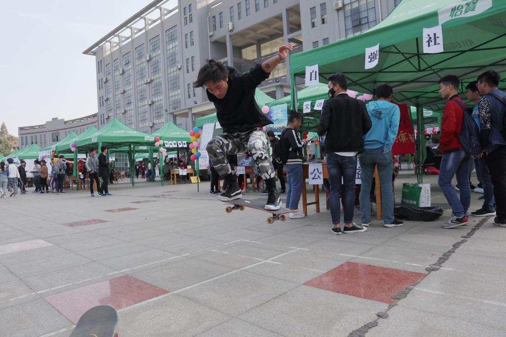 与以往不同的是,此次活动有三个商家赞助,并带来了活动。学长驾校为现场的学生提供了学车的优惠条件;魅族手机在会场举办的“11·11校园自拍挑战千人趴”活动征集1111名同学接力自拍,两人共同参与挑战,在自拍传递的过程中极大地活跃了现场氛围;又又吉他工作室筹划的十大歌手比赛现场弹唱,还邀请学生参与,让众多学生在摊位前流连。