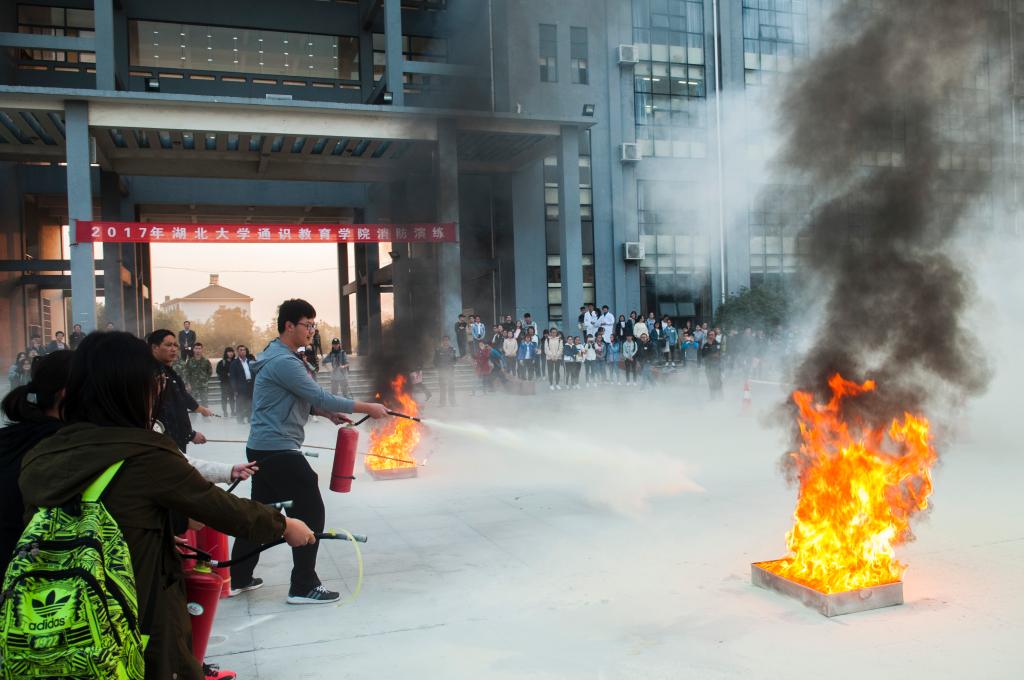本次演练共分为火警报警,应急逃生,灭火器操作,急救措施示范等部分。演练开始前,各习苑辅导员在教室组织学生观看了消防宣传片,从防火措施和急救方案等方面提高了在场学生有关消防的“四个能力”并普及了应急知识。