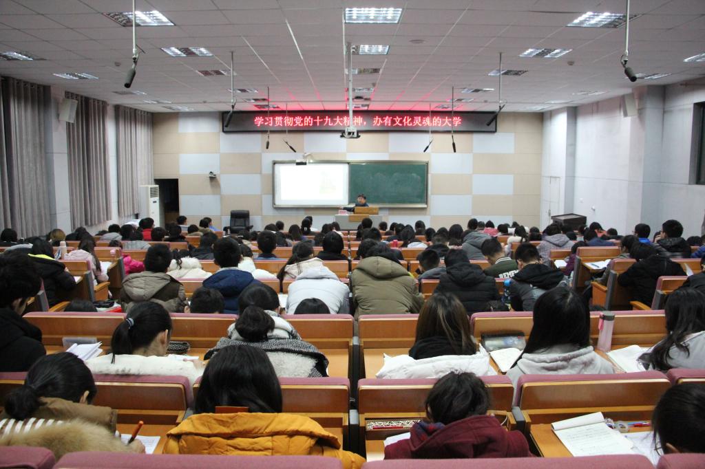 12月14日晚,学校党委宣传部常务副部长杨元业在教学楼B300为23、24期党校学员作了题为“学习贯彻党的十九大精神,办有文化灵魂的大学”主题辅导报告。