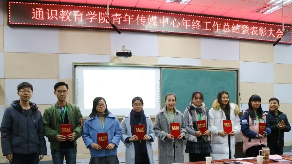 12月28日晚,通识教育学院青年传媒中心在B300录播室召开“不忘初心 砥砺前行”年终工作总结暨表彰大会。学院学工办主任陈冰,学院团委书记叶云岭,思齐苑辅导员、学院学生社团联合会指导老师李文,正心苑辅导员、学院艺术团指导老师吴秋爽,习坎苑辅导员张梦,明志苑辅导员、学院青年传媒中心指导老师姚凯彬,各学生组织代表,学院青年传媒中心全体成员共150余名师生参加会议。