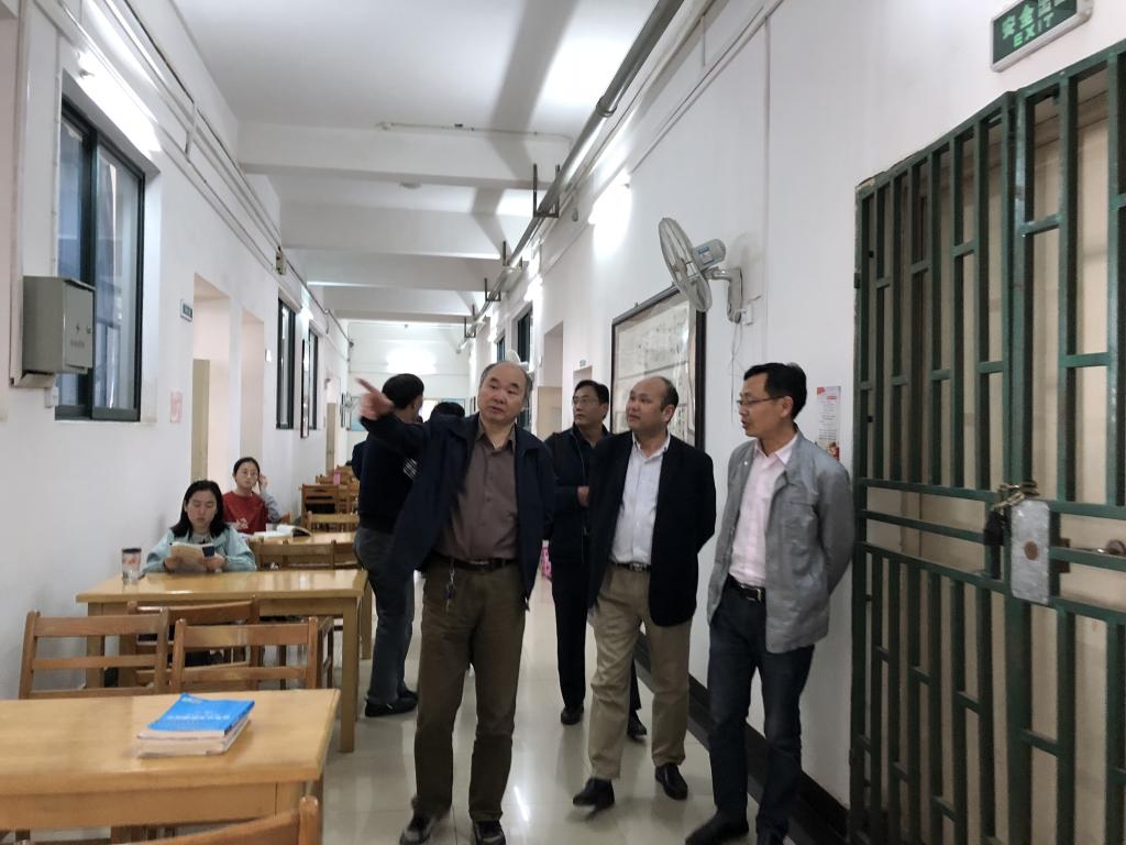 4月17日下午,校图书馆党总支书记何应华,馆长刘刚,副馆长骆晓曙、湛利华,办公室主任陈杰一行5人来阳逻校区调研交流图书馆建设工作。