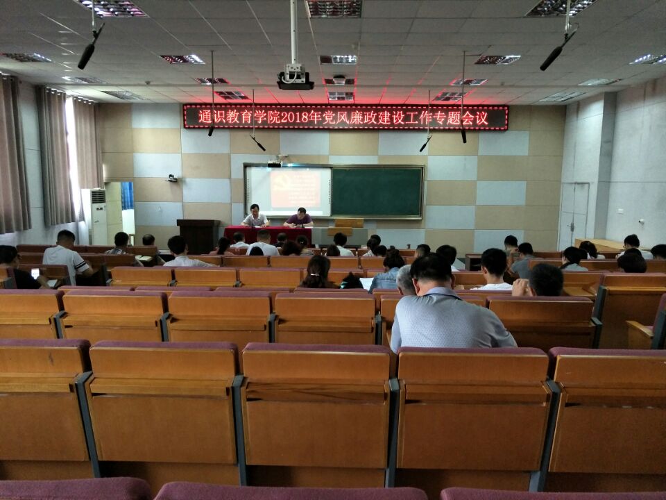 5月17日上午,学院在B300录播教室召开2018年党风廉政建设工作专题会议,部署开展第十九个党风廉政建设宣传教育月活动相关工作,并对学院前期党风廉政建设工作开展情况进行总结。院党委副书记宋韧主持会议,全院党员、各二级部门负责人、后勤服务中心班组长参加会议。