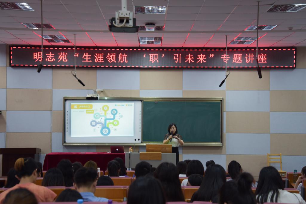 为促进学生树立正确的职业生涯规划理念,引导学生明确大学生活“航向”,把牢职业发展“罗盘”,5月23日下午,明志苑在B300开展“生涯领航‘职’引未来”专题讲座活动。本次讲座特邀好未来教育集团爱智康武汉分校人力资源部TD主管、获得国家高级人力资源管理师一级认证的宁雪校友与明志苑学子畅谈职业生涯规划。学院学工办主任、17级人力资源管理专业班主任陈冰、明志苑辅导员姚凯彬及明志苑学生代表参加讲座。讲座由陈冰主持。