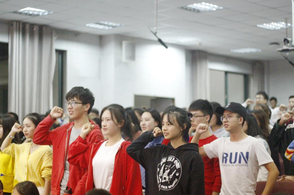 班会上,2018级播音与主持艺术专业的钟思瑜宣读了《湖北大学学生违纪处分办法摘要》,章程希望学生们能够树立“见不贤而内自省也”的精神。2018级播音与主持艺术专业的祁泉倡导,作为时代发声者和民族复兴人,大家应该争做文明优秀、德智体美劳全面发展的大学生,共同构建伟大复兴中国梦。“我倡议:上课手抄笔记,好记性不如烂笔头;不迟到旷课,认真听讲,尊重老师教学,争当诚实守信的时代新人......”班会在学生们的倡议和集体宣誓中落下帷幕。