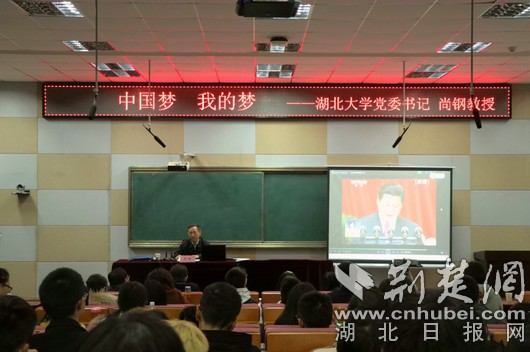 荆楚网消息(通讯员豆仪帆、袁聆彬 摄影张轶玟、徐泓雨)11月7日晚,湖北大学党委书记尚钢来到通识教育学院,为大一新生上“中国梦·我的梦”主题思政课。