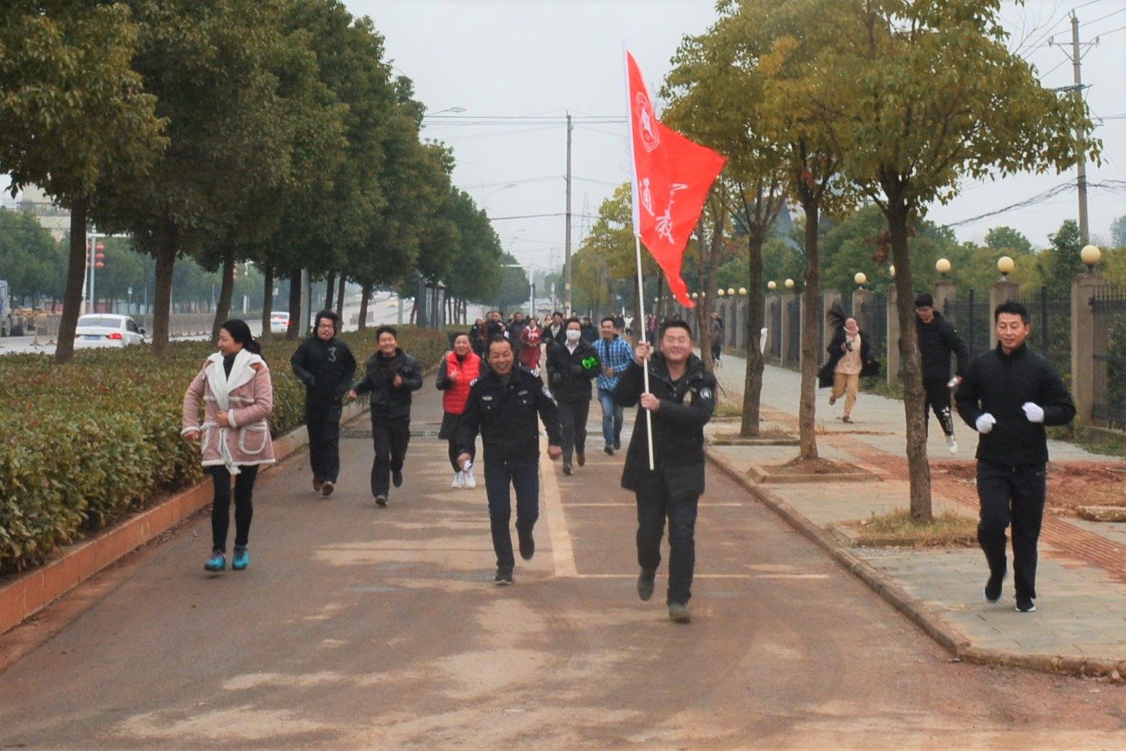 12月11日,学院开展了第四届“健康心态、快乐工作、幸福生活”主题冬季长途拉练活动,本次拉练是沿着学院后的鄢家湖绿道,进行四圈的长跑,每圈近3公里,全程12公里,近90名教职员工参加活动。