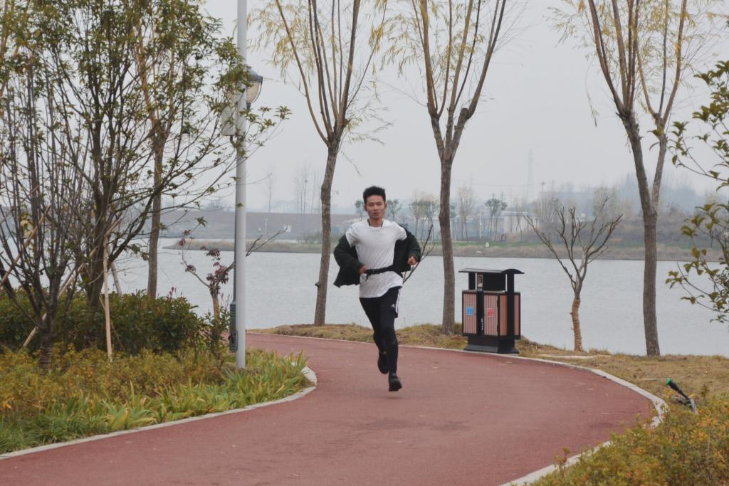 参加拉练活动的教职工于下午2:00在学院正门集合,在门口合照之后,全体教职工跟随院旗的指引经过侧门,向鄢家湖进发,拉练活动正式开始。此次绕湖拉练,在每一圈的终点处会有盖章点,盖满四个章的人才算完成此次拉练。在长跑期间,各教职工互相打气,相互鼓励,在侧门保安处还准备了红糖姜茶供结束拉练的教职工饮用。