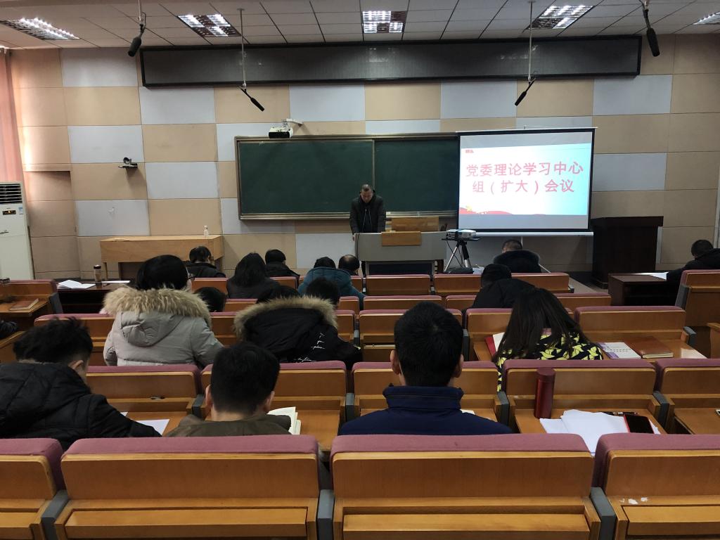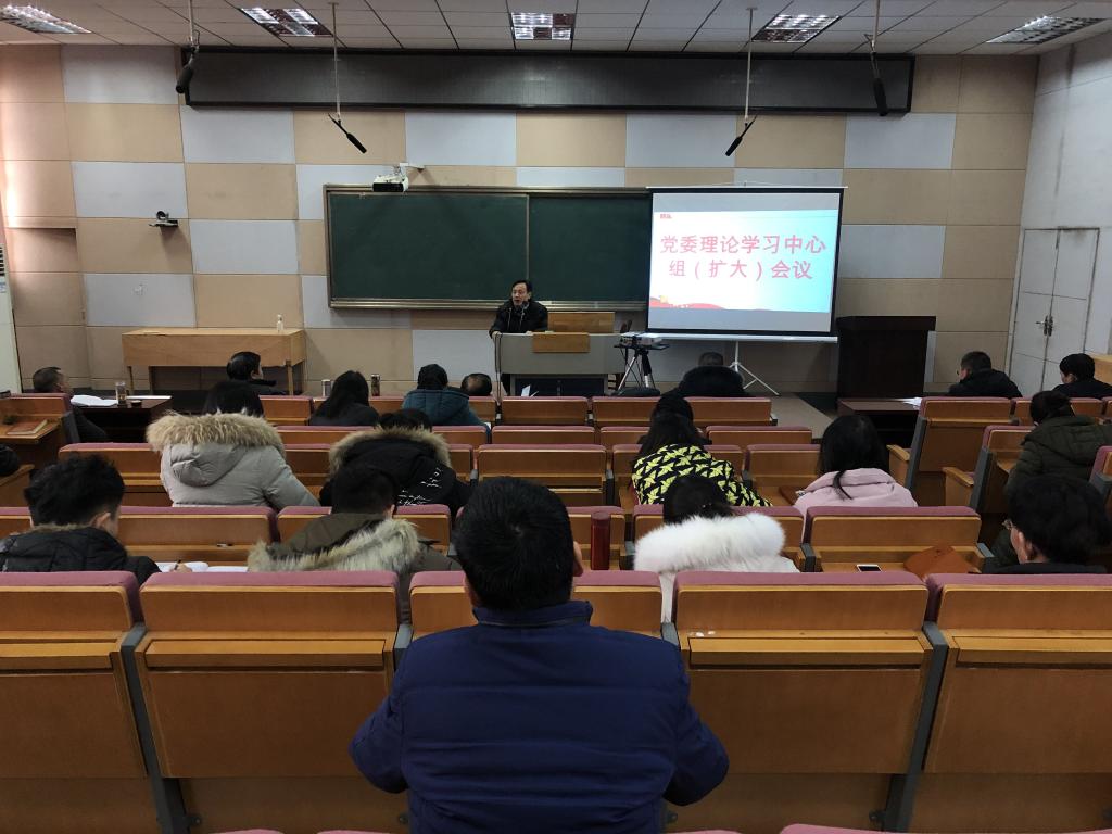12月12日上午,学院召开党委理论学习中心组(扩大)会议,专题开展师德师风建设和“弘扬爱国奋斗精神、建功立业新时代”主题学习教育,副院长陈文超主持会议,院党委领导班子成员,全院教职工参加会议。