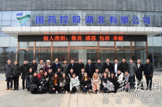 国药控股湖北有限公司领导班子及有关部门负责人,湖北大学通识教育学院班子成员及师生代表、生命科学学院负责人及药学专家代表、学校办公室及校医院负责人共计40余人参加了揭牌仪式。湖北大学另一个实践教育基地、全国精准扶贫示范村---保康县赵家山村党支部书记、村委会主任赵祥华一行3人受邀出席了揭牌仪式。