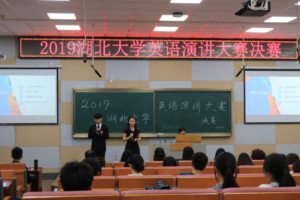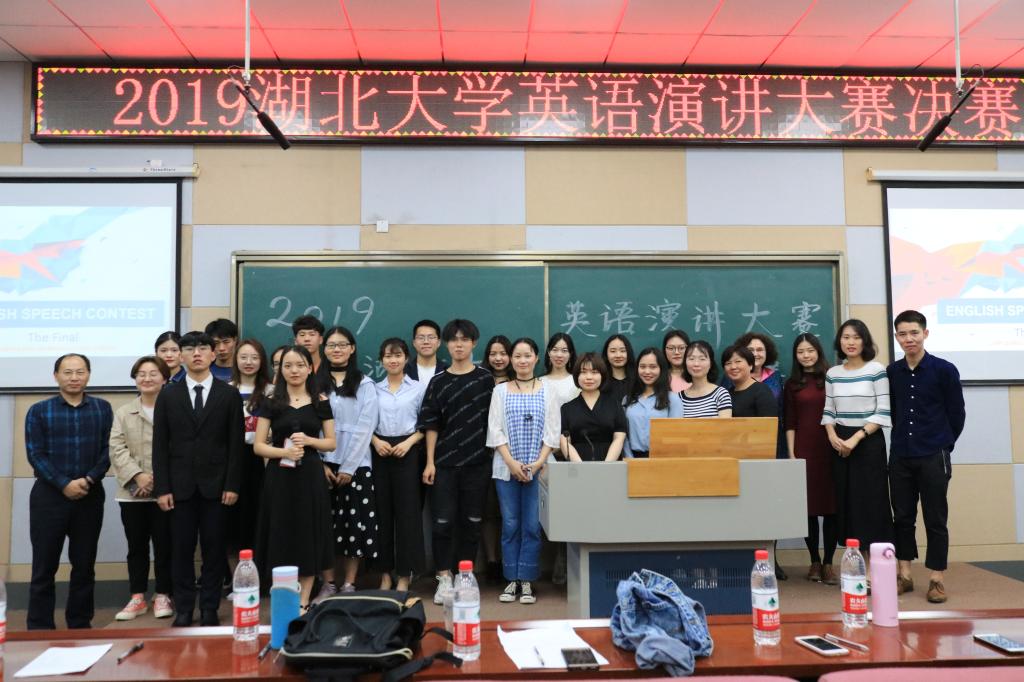 5月16日晚,由湖北大学外国语学院和通识教育学院主办、湖北大学英语广播台承办的2019年英语演讲大赛决赛在学院B300教室顺利举行。16位晋级决赛的选手同台竞争,其中6位选手来自校本部,其余10位来自通识教育学院。比赛由湖北大学外国语学院的5名专业教师及1名外教担任评委。