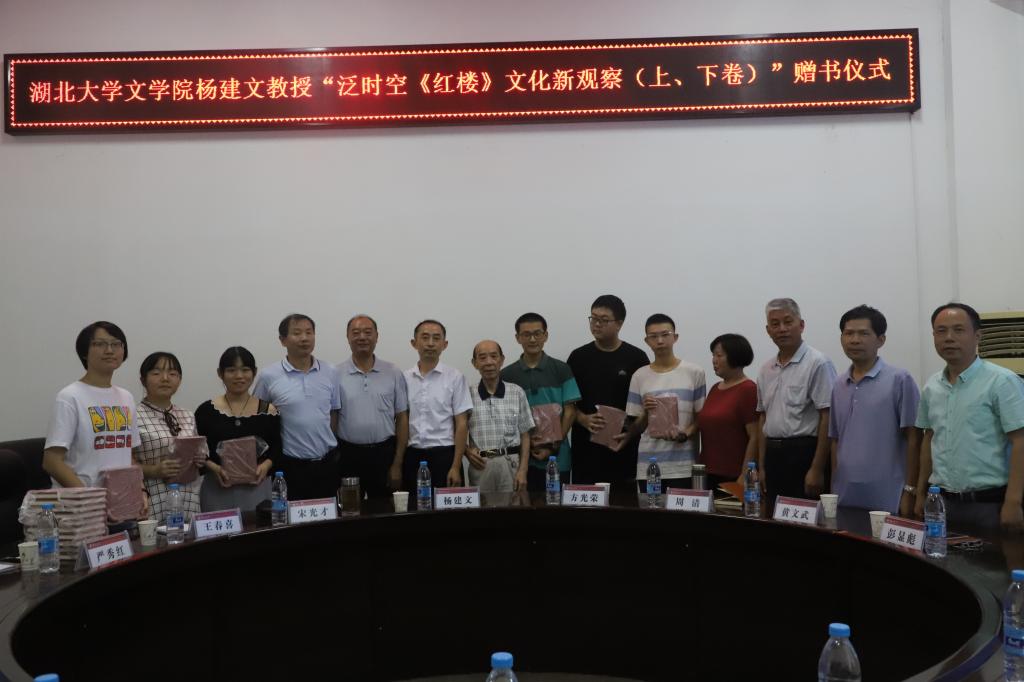 9月11日上午,湖北大学文学院退休教授杨建文来通识教育学院捐赠新书——《泛时空〈红楼〉文化新观察》。学校老教授协会常务副会长方光荣、副秘书长宋光才,通识教育学院班子成员、办公室及图书馆负责人、6名2019级新生代表参加赠书仪式及座谈,学院副书记、副院长王春喜主持赠书仪式。