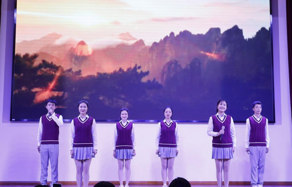 “祖国!给我们以力量!”“青春!你一刻也不能离开我!”通识教育学院朗诵队饱含激情的表演将现场气氛推向高潮。朗诵队成员、中国汉语言文学类学生安昶霖介绍,他们深入了解了作者及文章的创作背景,反复调整文章朗诵节奏和背景音乐,对朗诵艺术和诗文的二次创作有了新的认识,在作品中融入了自己想要表达的情感。“在舞台上的时候很紧张,但发挥得也比平常要好。很开心能有这个机会向祖国母亲献礼,希望自己在以后的学习生活中能真正将青春融入国家的发展脉搏。”比赛结束后,播音与主持艺术专业学生朱可芯说。