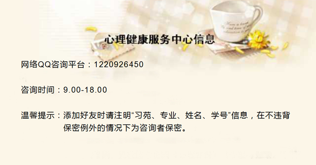 开设“网络解忧工作室”。建立面向全体学生的网络咨询平台,每天从上午8点到晚上6点向学生开放及家人开放,及时为同学们提供心理咨询和帮扶。