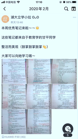 开展网上学习帮扶。全院62个班级全覆盖成立62个网络学习帮扶小组,共有536名品学兼优的学生自愿报名,为同学们在线提供义务解疑答惑和学习辅导。学习帮扶小组成员还每天为同学们推荐网络学习资源,定期开展“好笔记”分享,营造了比学赶超的良好风气。